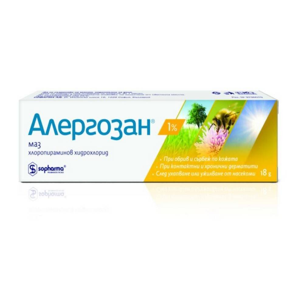 Allergozan ointment, Allergozan 1%, dimetindene ointment, allergy itch relief, antihistamine skin ointment, insect bite treatment cream, allergic skin reaction relief, topical antihistamine ointment, Allergozan 18 g