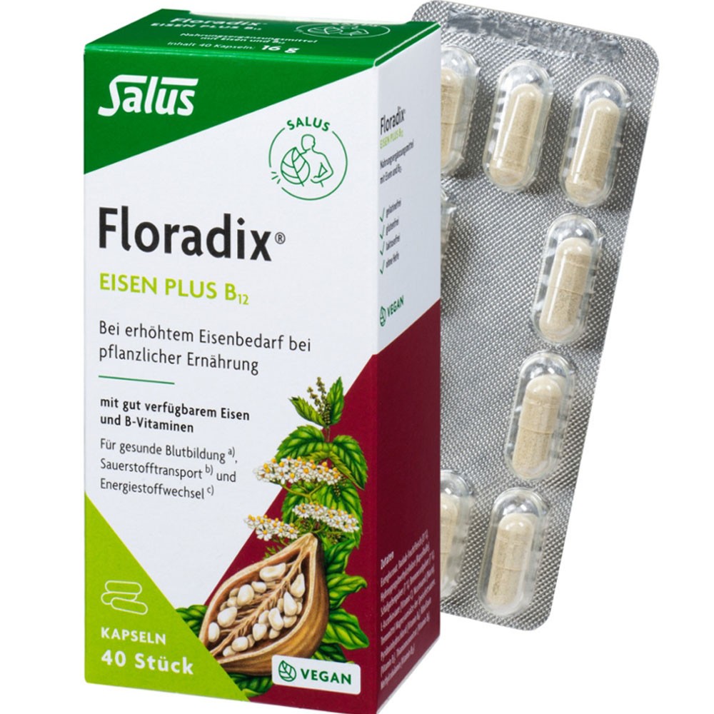 Floradix, Iron Plus B12, Vegan Capsules, 40 pcs