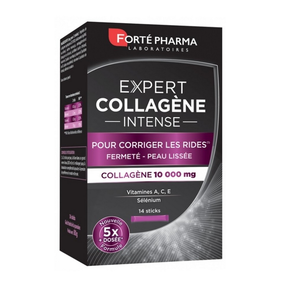 Forte Pharma Expert Collagen Intense is a high-strength collagen supplement formulated in convenient stick packs for easy daily use. Each stick contains hydrolyzed collagen peptides enriched with vitamins and minerals to stimulate natural collagen production, improve skin elasticity, and reduce the appearance of fine lines and wrinkles. Ideal for adults seeking effective anti-aging support in a portable format.