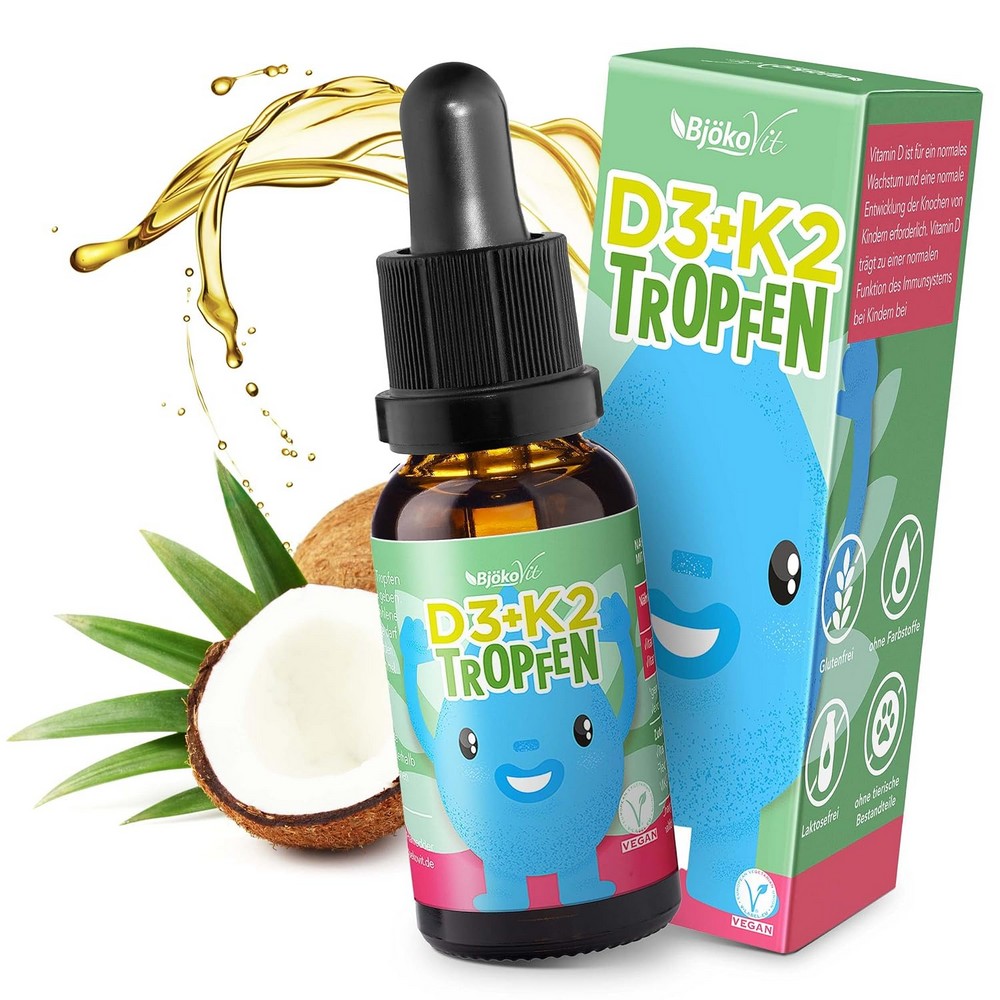 Liquid D3 + K2 drops for optimal absorption and bone health.