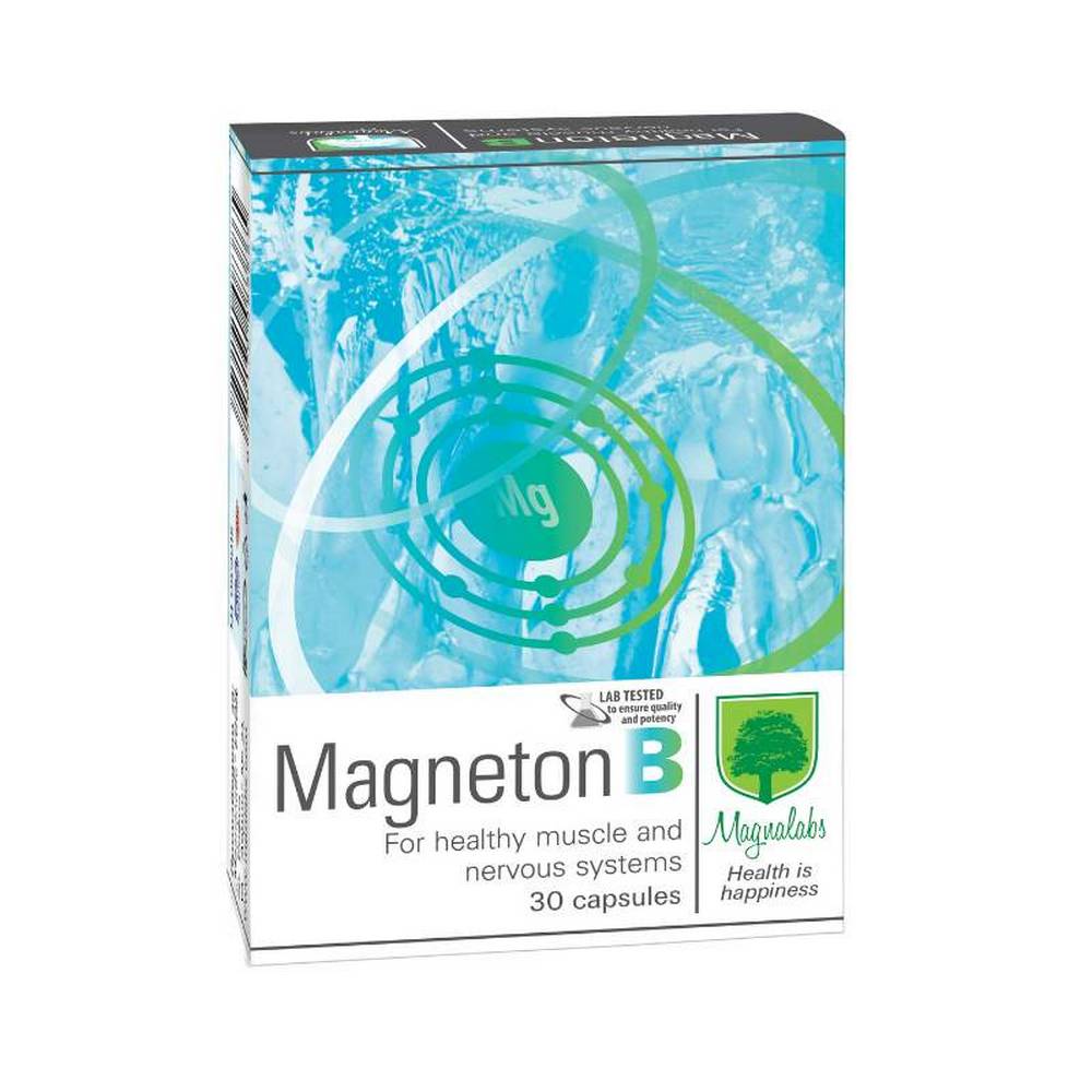 Magnesium and B-complex supplement supporting nerve and muscle function.