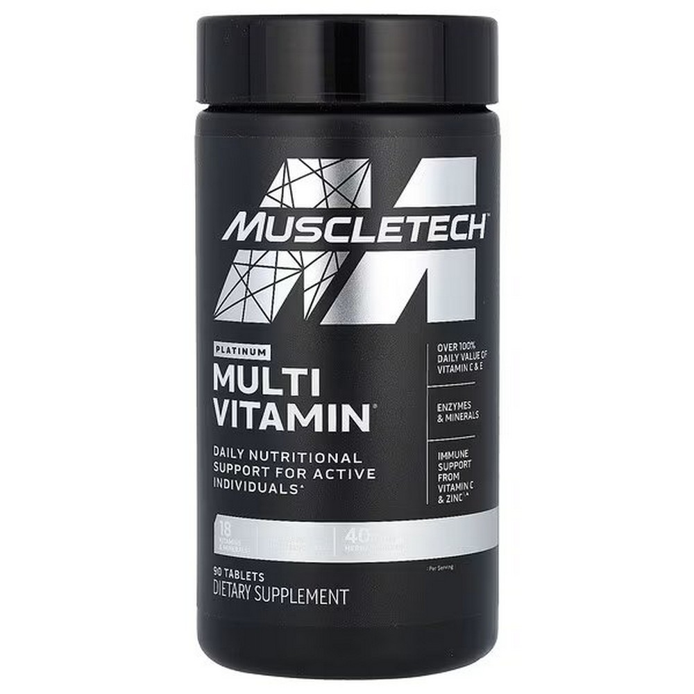 MuscleTech Platinum Multivitamin is a comprehensive multivitamin designed to meet the nutritional needs of active individuals and athletes. It contains a full spectrum of essential vitamins and minerals, along with antioxidants and performance-supporting compounds, to help maintain energy levels, support recovery, and promote overall health. The 90-tablet pack provides a convenient supply for three months of daily use.