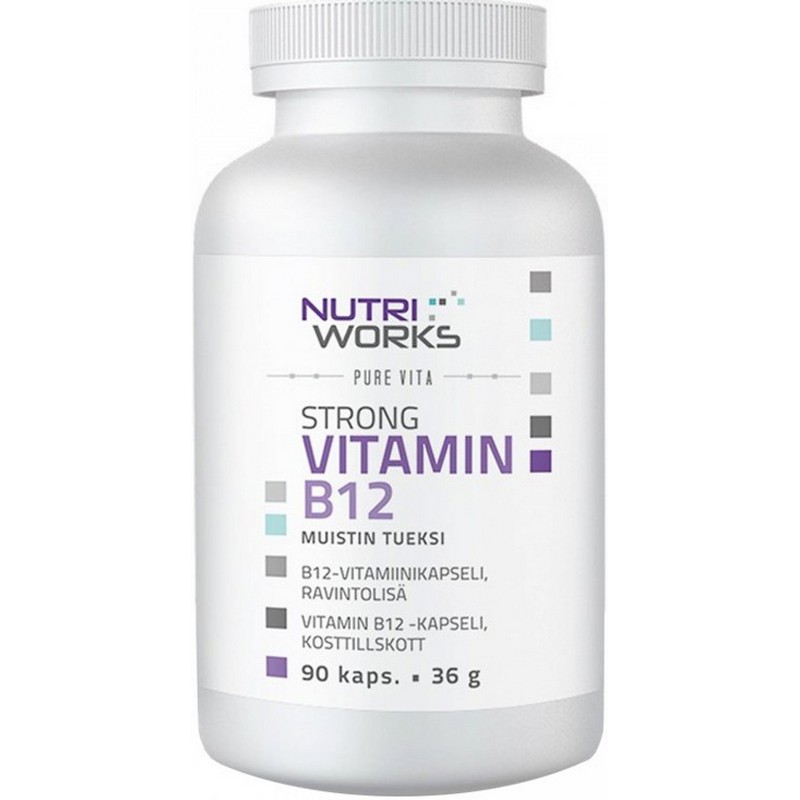 Strong B12 complex enhancing energy, endurance, and concentration (90 capsules).