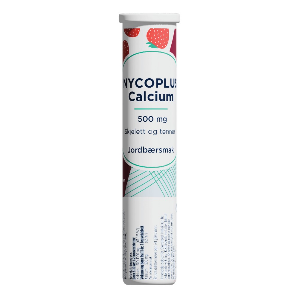 Effervescent calcium tablets strawberry-flavored for easy daily intake.