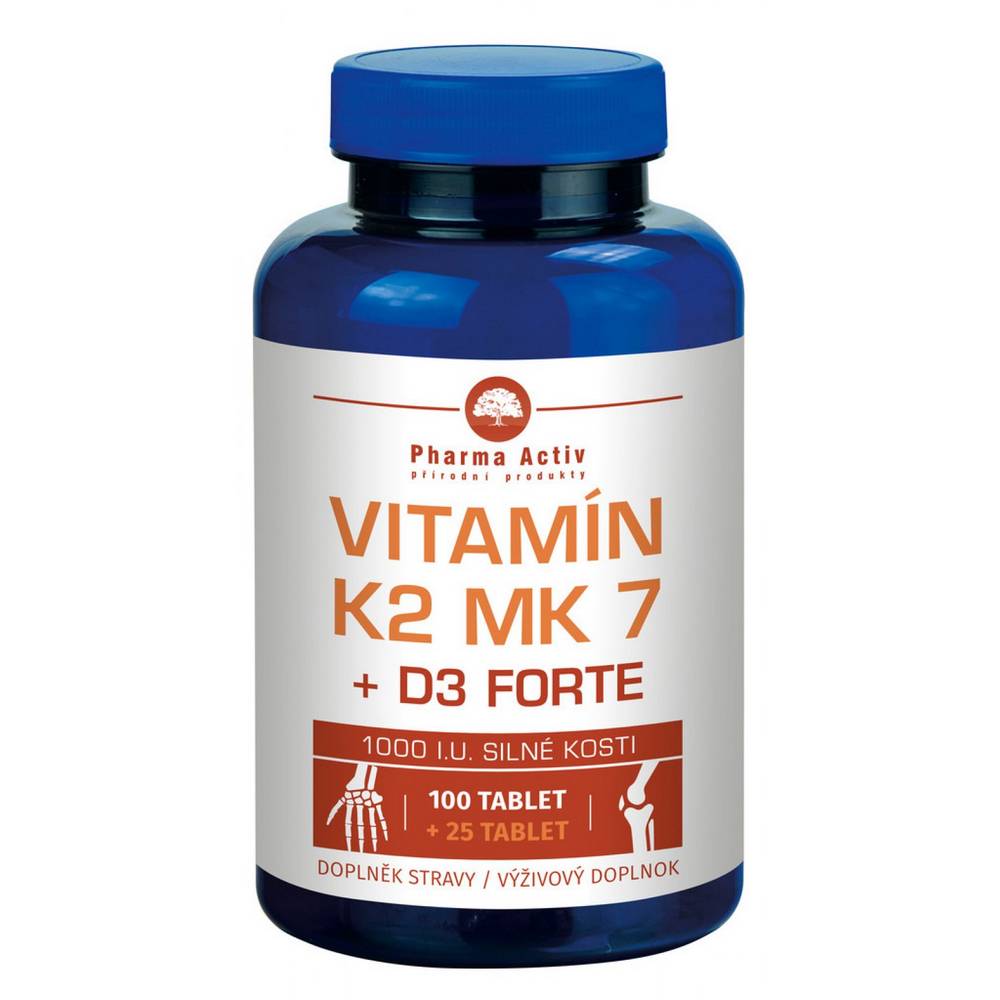 K2 and D3 Forte tablets supporting bones and immune function, 125 pcs.