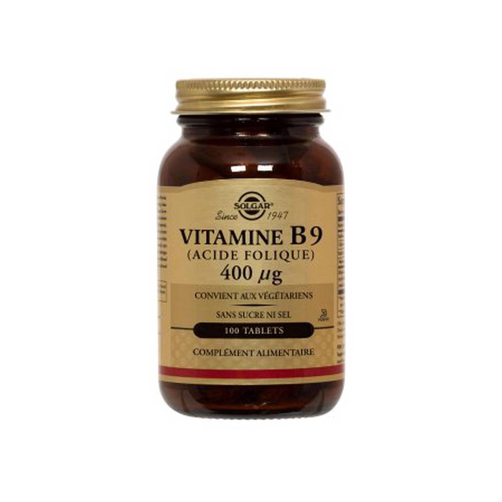 Solgar Vitamin B9, Solgar folic acid, Vitamin B9 supplement, folate tablets, 400 mcg folic acid, daily folate supplement, red blood cell support, metabolism support supplement, B-vitamin complex, EU vitamin supplements