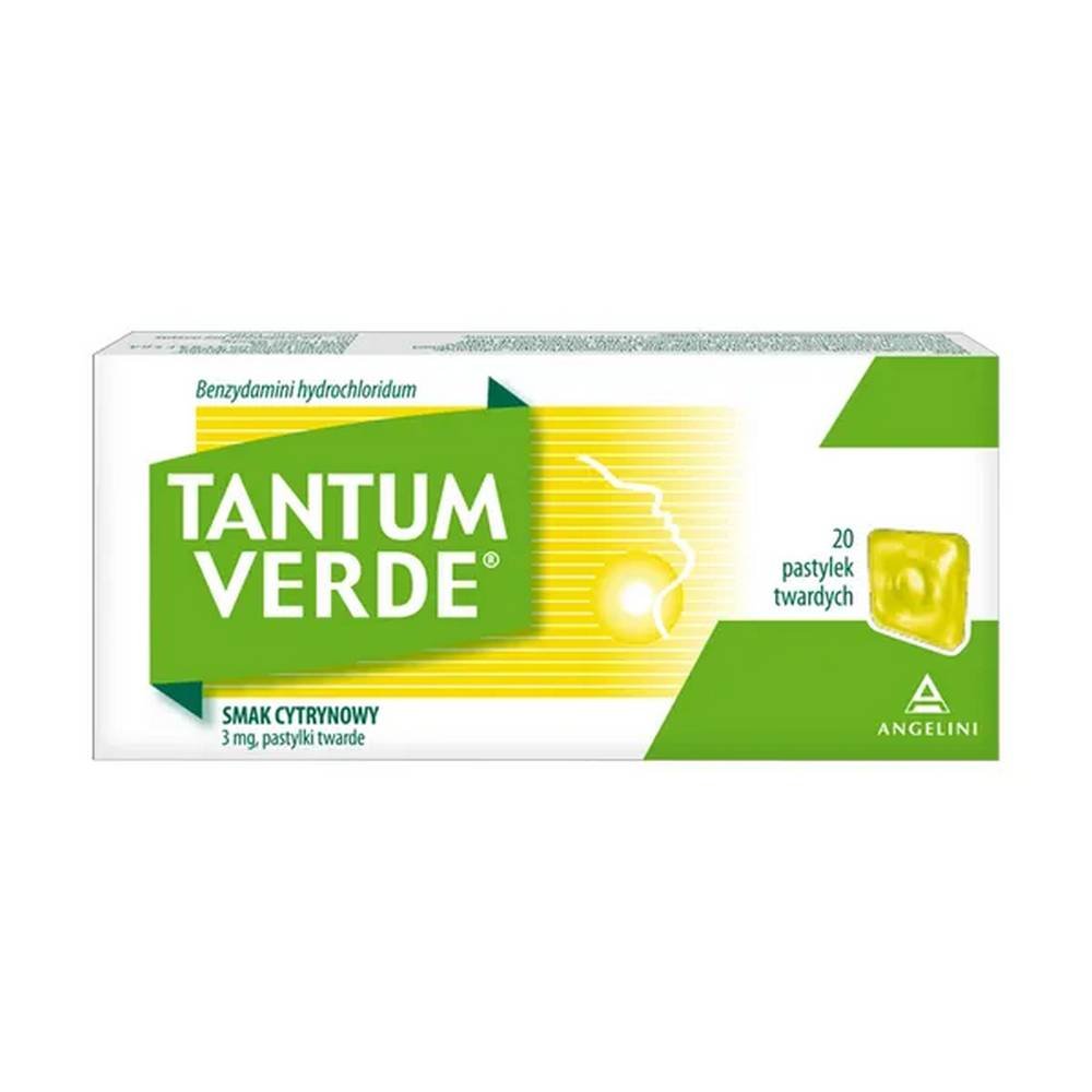 Tantum Verde Lemon Flavor 3 mg, 20 pcs – Lemon-flavored lozenges to relieve sore throat pain and irritation.