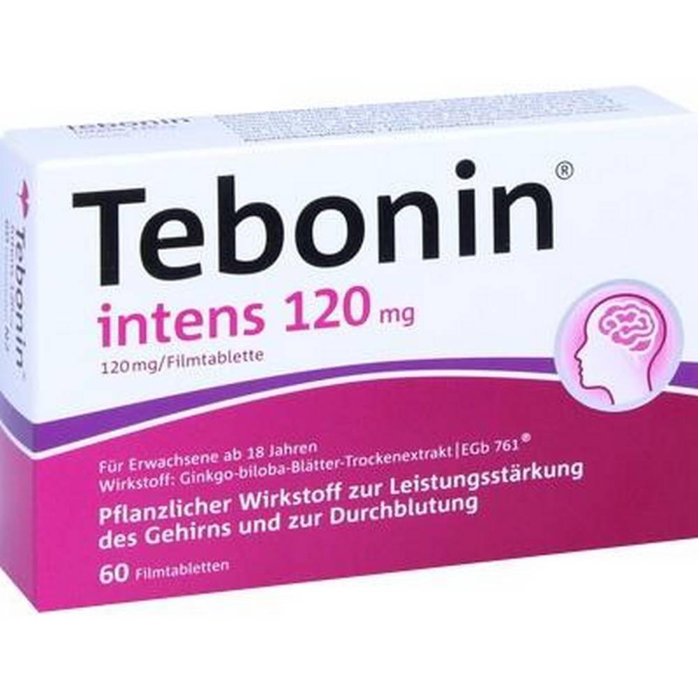 Tebonin Intense 120 mg, Tebonin 60 tablets, Ginkgo biloba tablets, EGb 761 extract, memory and concentration supplement, circulation support tablets, herbal brain health supplement, Tebonin EU pharmacy, cognitive function support, natural brain booster