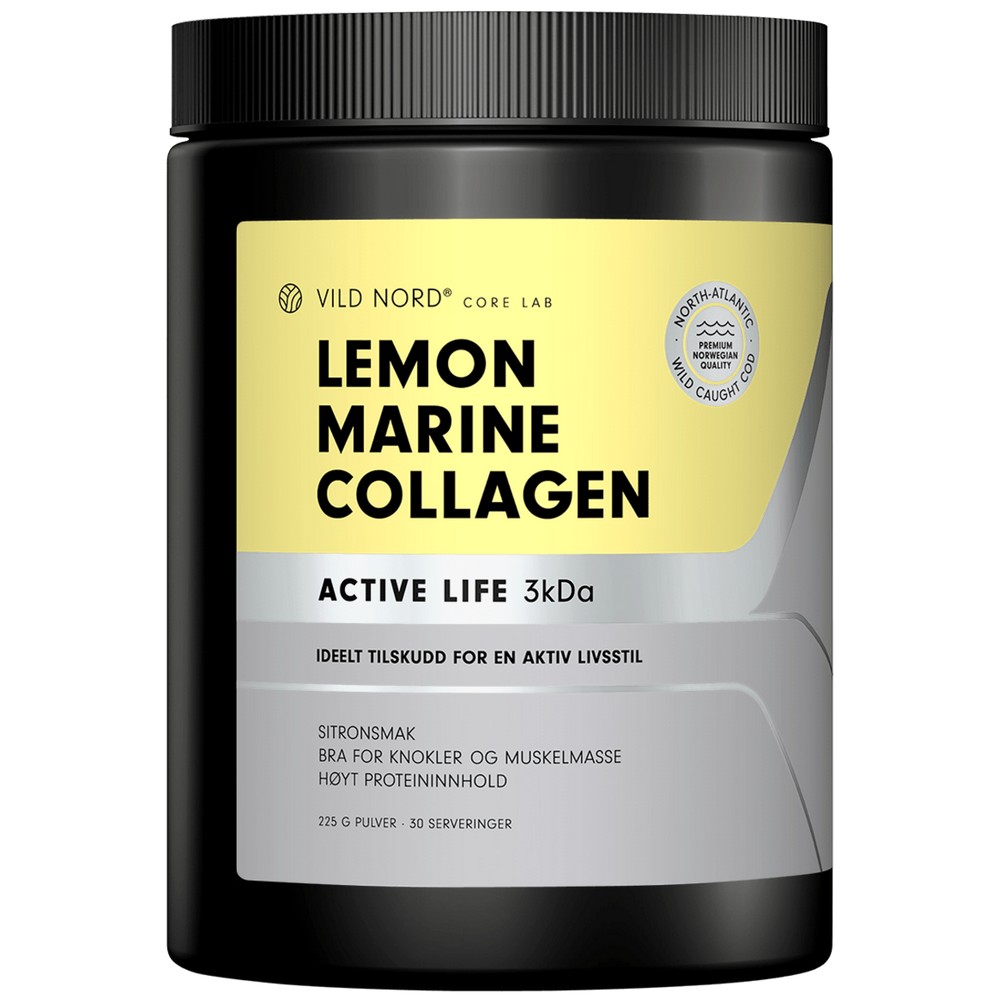 Lemon-flavored marine collagen supporting elasticity and skin tone.